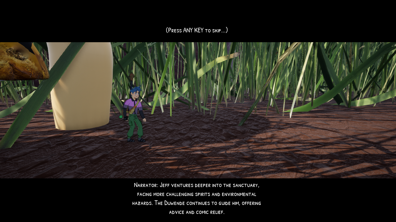 Embark on an adventure as Jeff, a young musician shrunk to miniature size by a mischievous duwende. Armed with a magical instrument, navigate a vibrant, lush world filled with not-so-small forest critters that are infected by a curse. Inspired by Filipino folklore and the superstition "tabi-tabi po," Jeff's journey highlights the importance of respecting nature, harmony through music, and personal redemption.